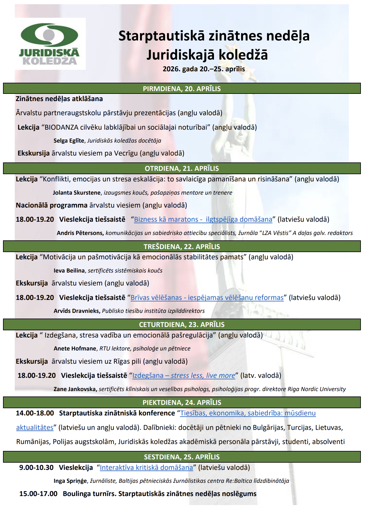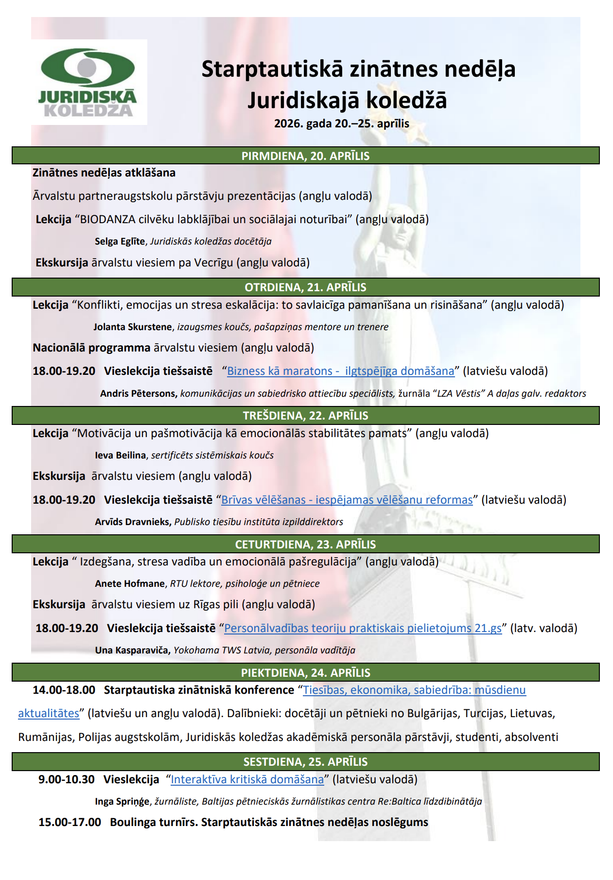 Juridiskās koledžas direktore Intra Lūce 2026. gada 11. martā piedalījās Eiropas Savienības…